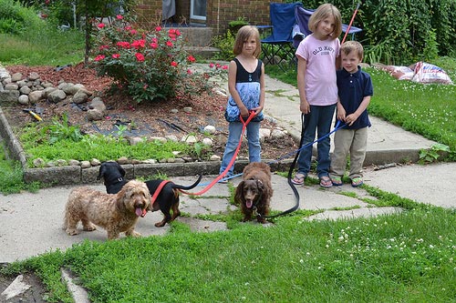 Walking your dog or playing with your pet means exercise. Sure, you they sell dog doors at PetSafe or PetSmart, but when your dog needs to go and comes running to you with leash-in-mouth, you and your kids have an obligation. Make it fun by going on trips to the dog park and letting your children interact with all different breeds. Just make sure they know to ask before petting any animals they don’t personally know.